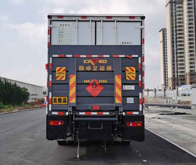 東風天錦小三軸易燃氣體廂式運輸車是危險品運輸車中的細分專用車產品。國六排放。康機245馬力發動機,大同7檔變速箱,1995+4200/5000軸距,前橋6噸后橋10噸, 295/80R22.5 18PR輪胎,天錦D530排半駕駛室,新法規,廂式危險品運輸車專用。其他按國家危險品運輸車標準執行(底盤前盤(碟)后轂、ECU限速80km/h,空氣懸掛、行駛記錄儀、ABS,AEBS,TPMS,FCWS/LDWS),排氣管前置。有燃油和環保公告,上戶無憂。尾板為選裝件,選裝尾板時,尾板質量為550kg,尾板收起狀態時的水平長度為280mm. 東風天錦小三軸易燃氣體廂式運輸車廂體外飾冷軋鋼板,內飾防靜電鋁板,底板鋪防靜電膠板,側壁設防雨通風窗口,帶捆綁固定拉環,煙霧感應器,防盜報警開關,靜電帶,滅火器2只,有危險標志,貼有反光標識。廂體右側開側門,可選裝無側門廂體、帶隔倉箱體。選裝開百葉窗,選裝瓦楞板結構.。