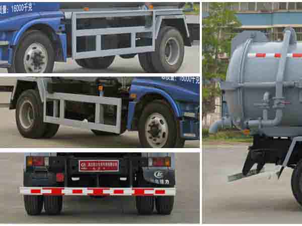 福田奧鈴10方吸污車上裝部分:由取力器、傳動軸、真空吸污泵、壓力罐體、液壓部分,管網系統、真空壓力表、視糞窗、洗手裝置等組成,隨車配置大功率真空吸污泵和優質液壓系統,罐體封頭一次壓鑄成型、罐體可后開、雙頂自卸。罐內污物可通過后蓋直接傾倒。