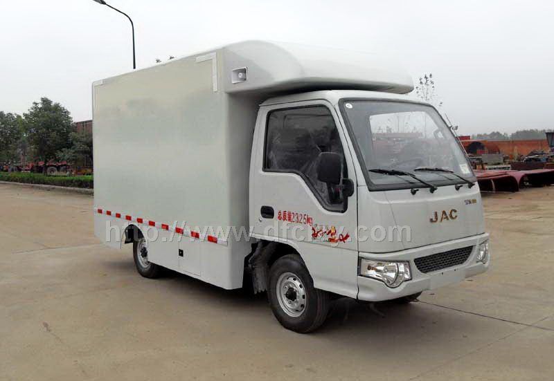 1.僅選擇2600mm軸距;2.車廂頂部封閉,不可開啟;3.廂內內部設備可根據用戶要求定制如發電機/冰柜/冷飲機/售貨臺/炊具等;4.發動機LJ474Q3E2最大凈功率為58kw,選裝玻璃鋼整體造型;選裝左右兩側不同結構形式的側翻門/后門,選裝LED屏,選裝頂置空調,導流罩,燈箱廣告. |