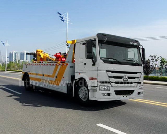 重汽豪沃拖吊連體道路清障車上裝配置:起重裝置、托舉牽引裝置、液壓系統、電控系統、車體與工具箱等組成,具有起吊、拽拉和托舉牽引等多項功能。