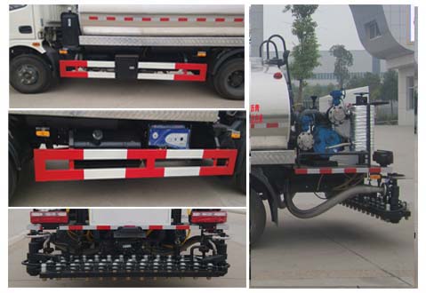 東風凱普特6噸瀝青灑布車標準配置:噴嘴13-39個,噴灑寬度4.5米-6米。瀝青泵,意大利柴油燃燒機(導熱油自動升溫),罐體采用6MM厚度鋼板,外包1MM亞光不銹鋼板,中間80MM的耐高溫石棉。6千瓦汽油發動機。手動噴槍一只。