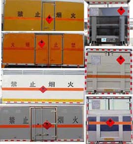 廂體頂部封閉,不可開啟.運輸介質:黑火藥,壓縮黑火藥,電引爆雷管,爆破炸藥,點燃導火索等.運輸介質類別和項別號:1.1D,1.1D,1.1B,1.1D,1.4G,1.1G等.選裝不帶側門,側門型式及位置;選裝液壓升降尾板,廂體顏色可變化,文字噴涂位置可變化。隨底盤選裝駕駛室;僅選用前盤式制動器,前置排氣管,子午線輪胎,限速裝置的底盤,限速80km/h,該車安裝具有衛星定位功能的行駛記錄儀。側,后防護裝置材料材質為碳鋼/Q235B;與副梁采用螺栓加焊接連接;后部防護斷面尺寸(mm):100×50,后部防護離地高度(mm):390. ABS型號為3631010-C2000,生產廠家為東科克諾爾商用車制動系統(十堰)有限公司。 |