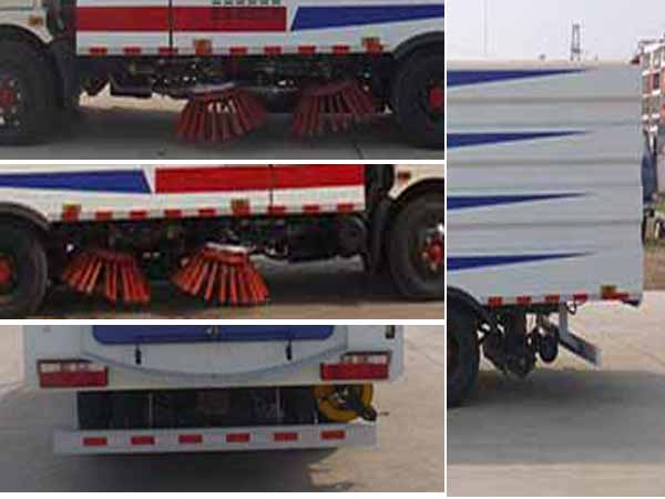 東風多利卡HCQ5082TSLE5國五掃路車采用東風多利卡型國五二類底盤改裝,加裝副發動機、風機、清水箱、垃圾箱、左右立掃、后置吸盤,掃盤降塵系統,液壓系統、專用裝置電控系統和副車架等改裝而成: