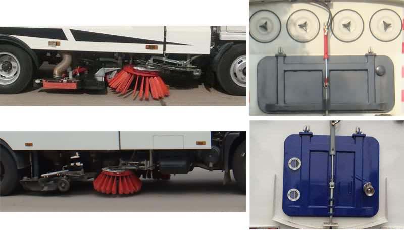 7、左右立掃為單掃盤,前掃盤帶自動避讓功能,減少了掃刷的數量和掃刷消耗量,能降低使用成本。掃刷上加裝噴水裝置,用于噴霧降塵。左右立掃分開控制,可實現后掃和全掃等不同的作業模式。