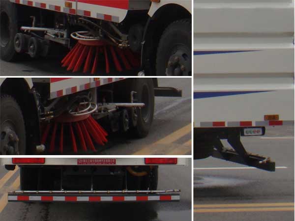 隨底盤(pán)選裝駕駛室;選裝吸盤(pán)中置和雙掃刷結(jié)構(gòu),選裝后部結(jié)構(gòu);選裝弧形垃圾箱;側(cè)面防護(hù)裝置與工作裝置相干涉,故豁免;后下部防護(hù)裝置材料材質(zhì):Q235,連接方式:焊接加螺栓連接,斷面尺寸(寬×高):50×100(mm),離地高度:370mm;ABS型號(hào)為3631010-C2000,生產(chǎn)廠家為東科克諾爾商用車制動(dòng)系統(tǒng)(十堰)有限公司. |