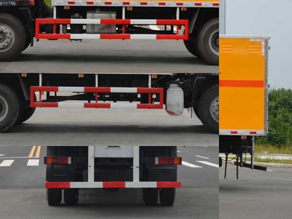 1、廂體頂部封閉,不可開啟;2、廂體顏色可變化,文字噴涂位置可變化;3、前置排氣系統(tǒng),ABS系統(tǒng)型號為4460046300,生產(chǎn)企業(yè)為威伯科汽車控制系統(tǒng)(中國)有限公司;4、運輸品名:黑火藥,壓縮黑火藥,電引爆雷管,爆破炸藥,點燃導火索,類項號:1.1D,1.1D,1.1B,1.1D,1.1G;5、防護裝置材料:側面防護及后下部防護裝置材料材質:冷彎型鋼/Q235,連接方式:焊接加螺栓連接,后下部防護裝置截面尺寸100mm×50mm,離地高度540mm;6、MC05.18-50發(fā)動機油耗值為26.3L/100km,MC05.21-50發(fā)動機油耗值為26.4L/100km;7、裝配限速裝置,限速80km/h,安裝具有衛(wèi)星定位功能的行駛記錄儀;8、采用前盤式制動器,子午線輪胎。 |