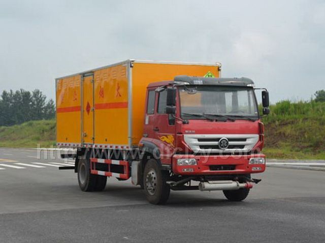 重汽斯達-斯太爾牌防爆車\民爆車\炸藥運輸車廂體外飾冷軋鋼板,內(nèi)飾防靜電鋁板,底板鋪防靜電膠板,側壁設防雨通風窗口,帶捆綁固定拉環(huán),煙霧感應器,防盜報警開關,靜電帶,滅火器2只,車廂黃色,有危險標志,貼有反光標識。