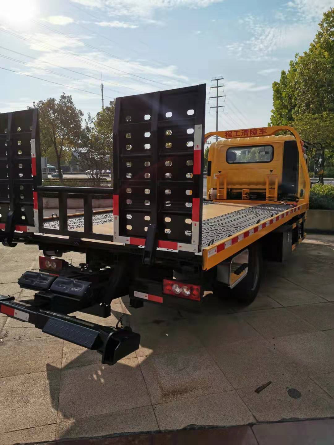重汽豪曼國(guó)六藍(lán)牌一拖二平板道路清障車(chē)底盤(pán)配置:采用中國(guó)重汽清障車(chē)二類(lèi)專(zhuān)用底盤(pán),1米9寬?cǎi){駛室,多功能方向盤(pán),真皮座椅,濰柴130馬力國(guó)六發(fā)動(dòng)機(jī),六擋箱, 7.00R16鋼絲胎,空調(diào),中控,電動(dòng)玻璃等。藍(lán)牌,標(biāo)配1個(gè)40KN液壓卷?yè)P(yáng),25米鋼絲繩,板廠4米2,尾板1米,寬2米3,雙側(cè)聯(lián)動(dòng)操作,全液壓翻轉(zhuǎn)板,新款上裝,可做伸縮尾板,托叉一對(duì),托叉座一對(duì),鏈鉤一條。警燈喊話器一套,輔助小車(chē)一套,六根捆綁帶。