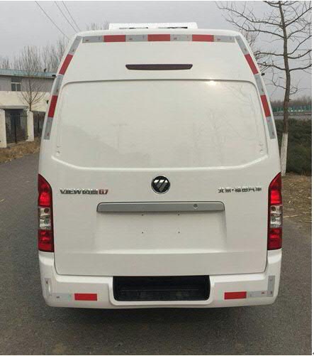 福田風景G7國六面包冷藏車/食品運輸車選裝配置:箱體內材料,玻璃鋼,鋁合金,不銹鋼。聚氨脂泡沫厚度5mm或8mmm.溫度記錄儀,隨車打印,高低溫報警定位.制冷機組根據用戶要求選裝-5度至-15度國產機組。