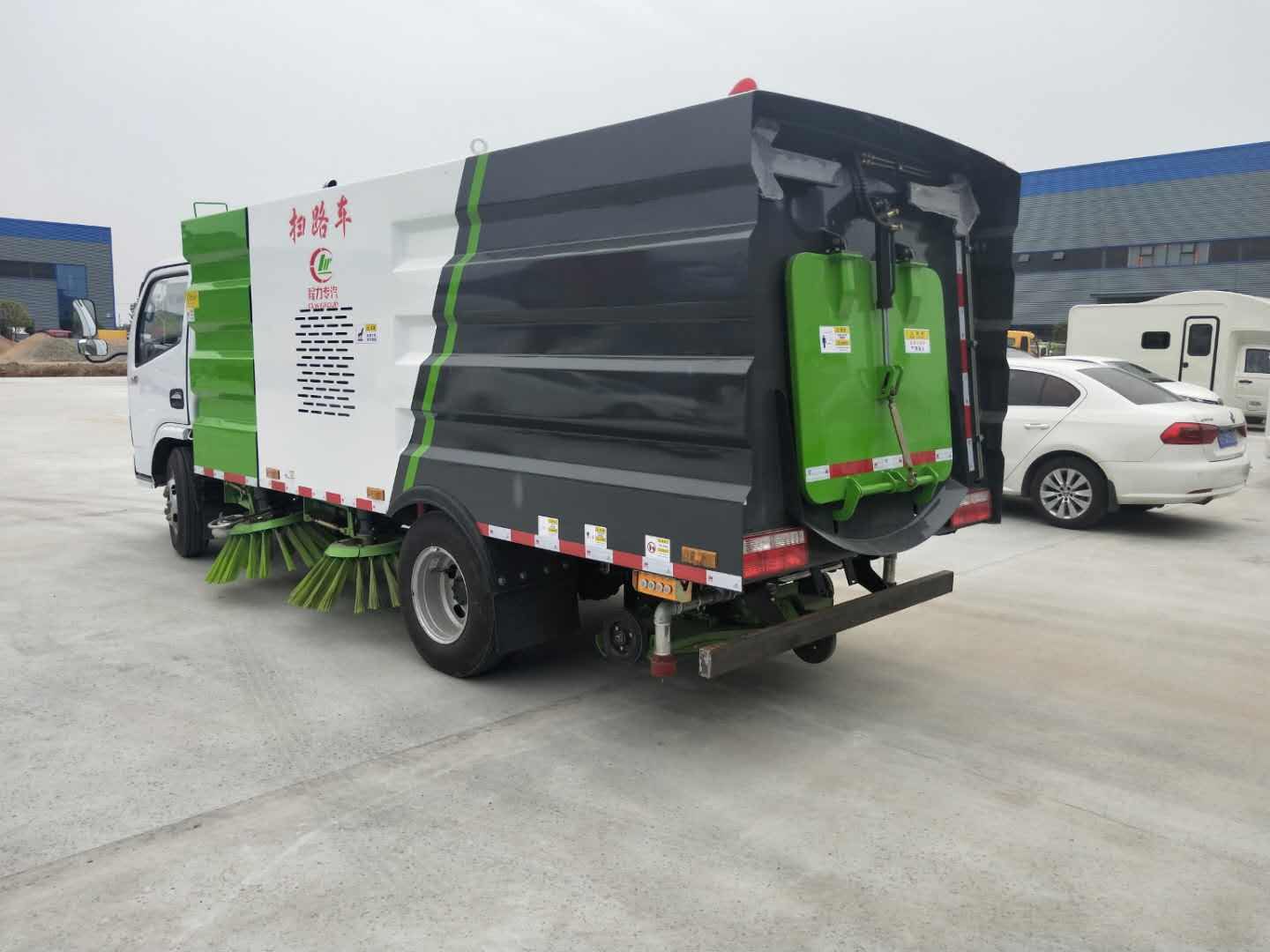 | 東風多利卡國六掃路車采用東風多利卡型國六二類底盤改裝,加裝副發動機、風機、清水箱、垃圾箱、左右立掃、后置吸盤,掃盤降塵系統,液壓系統、專用裝置電控系統和副車架等改裝而成: