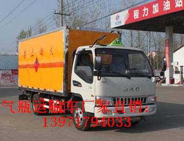 氣瓶運輸車上裝配置:根據國家有關部委對爆破器材運輸的規范和用戶的要求而研制生產,具有廂體強度高、防火阻燃、防止靜電火花、煙火報警和防盜報警等主要功能,還可選裝側裝門(單開或雙開),車型可分為貨廂式和倉欄式。