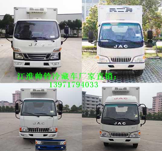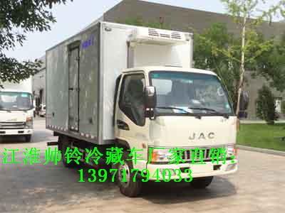 國五藍牌江淮帥鈴冷藏車選裝配置:箱體內外材料:玻璃鋼,彩鋼,鋁合金,不銹鋼;用戶還可以選裝肉鉤、通風槽,通風隔板,頂部導軌滑道;聚氨脂泡沫厚度:5CM,8CM,10CM,12CM;溫度記錄儀:隨車打印,高低溫報警,GPS定位;選裝側開門:單側門,雙側門;制冷機組根據用戶要求選裝-18度至0度國產機組或進口機組(獨立或非獨立,一體機組)。 國五藍牌江淮帥鈴冷藏車可用做冷藏,冷凍食品,飲料,藥品,疫苗,醫療廢品等各類需要恒溫,冷藏,冷凍物品的運輸配送。價格實惠,歡迎來電洽談.