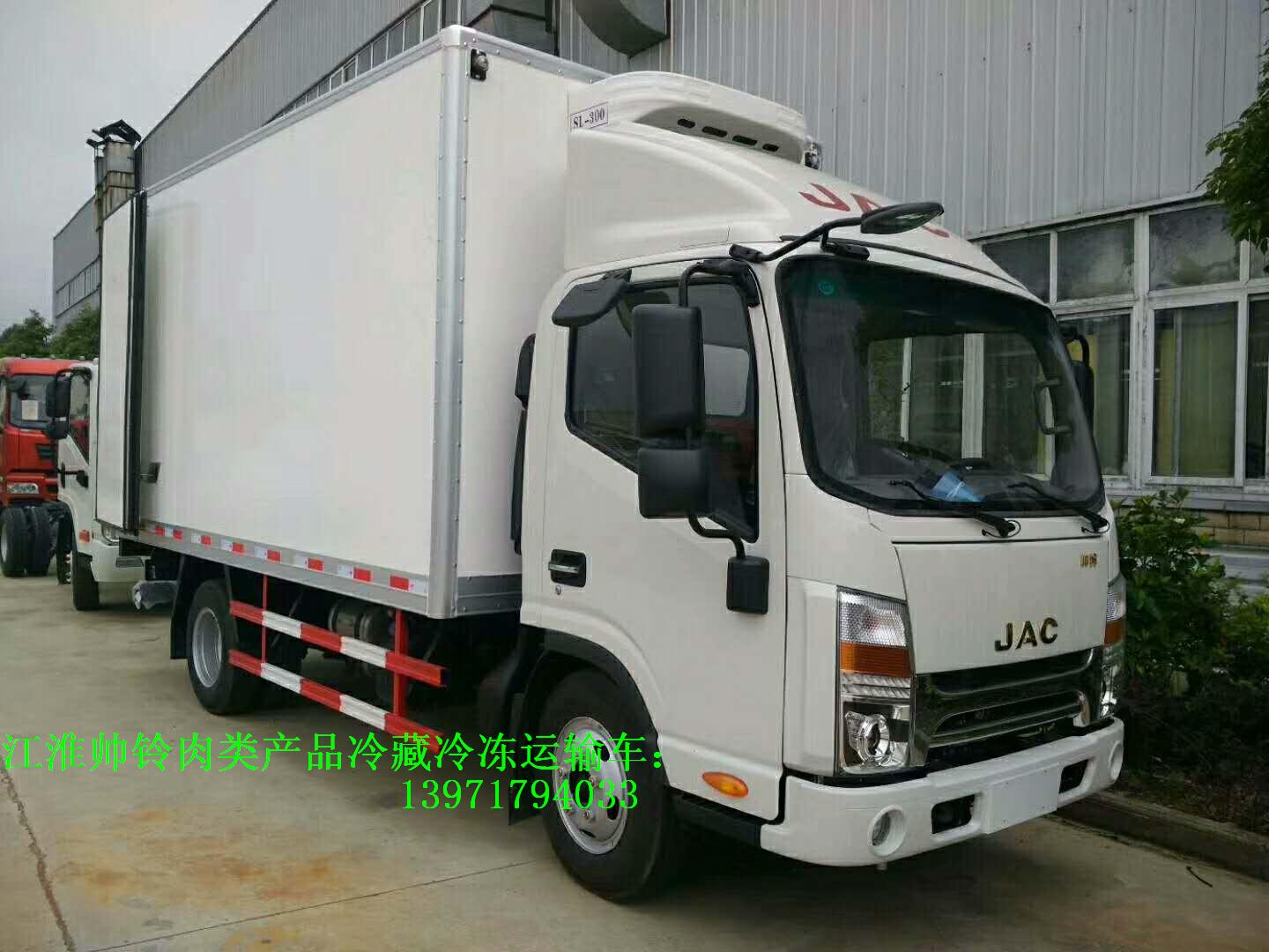 江淮帥鈴肉類產(chǎn)品冷凍冷藏車|蔬菜運輸車|食品運輸車采用江淮公司二類底盤,寬體駕駛室,7.00-16 8PR鋼絲輪胎,LC6T450變速箱,空調(diào).動力轉(zhuǎn)向,MP3,框架式倒車鏡,多功能方向盤,ABS,盤式制動等。搭載江淮156馬力,濰柴130馬力或康明斯143國五發(fā)動機,有燃油和環(huán)保公告,上牌無憂。 江淮帥鈴肉類產(chǎn)品藍牌冷凍冷藏車標準配置:國內(nèi)知名廠商生產(chǎn)的玻璃鋼、彩鋼廂板,各板塊間用高強度結(jié)構(gòu)膠粘接,配以鋁合金型材鉚接成整體,中間8CM聚氨脂泡沫保溫,箱體內(nèi)頂部安裝LED頂燈,肉鉤、通風槽,通風隔板,頂部導軌滑道,安裝排水孔。廂頂封閉,制冷效果更顯著。門鉸鏈及栓桿等可選用不銹鋼和鍍鋅件兩種。 江淮帥鈴肉類產(chǎn)品藍牌冷凍冷藏車選裝配置:箱體內(nèi)外材料:玻璃鋼,彩鋼,鋁合金,不銹鋼;用戶還可以選裝聚氨脂泡沫厚度:5CM,8CM,10CM,12CM;溫度記錄儀:隨車打印,高低溫報警,GPS定位;選裝側(cè)開門:單側(cè)門,雙側(cè)門;制冷機組根據(jù)用戶要求選裝-18度至0度國產(chǎn)機組或進口機組(獨立或非獨立,一體機組)。 江淮帥鈴肉類產(chǎn)品藍牌冷凍冷藏車可用做冷藏,冷凍食品,飲料,藥品,疫苗,醫(yī)療廢品等各類需要恒溫,冷藏,冷凍物品的運輸配送。藥品冷藏車和普通冷藏車相比必須符合醫(yī)用GSP認證:1.內(nèi)飾前板安裝100MM高通風槽,2.內(nèi)飾側(cè)板安裝50MM高通風槽,3.內(nèi)飾底板55MM高鋁導軌。價格實惠,歡迎來電洽談.