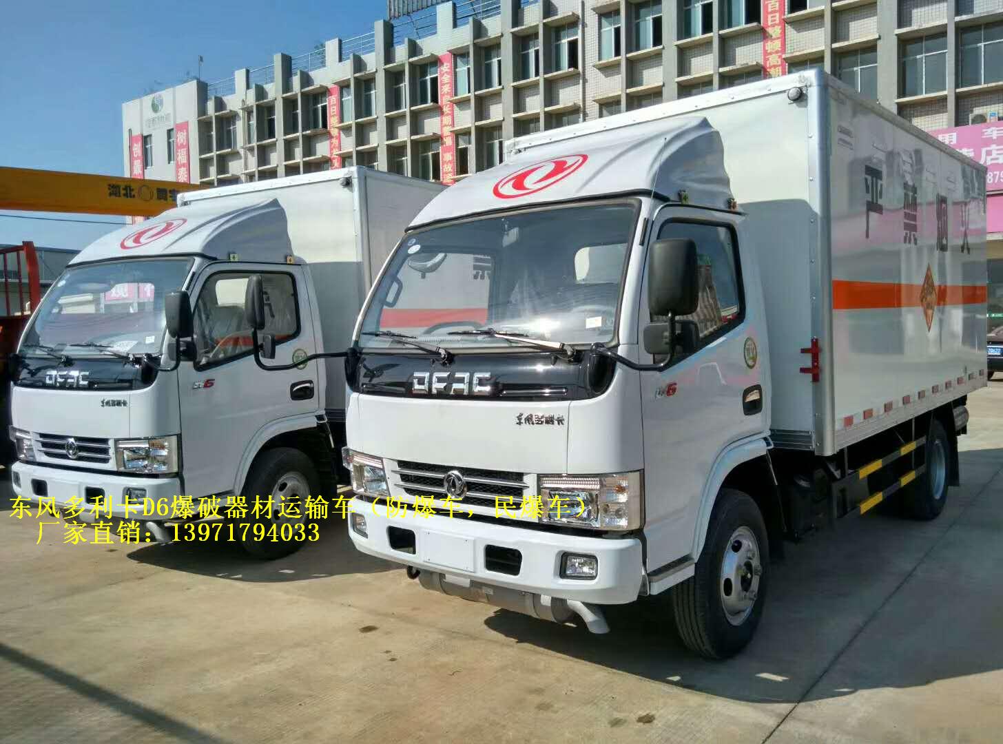 東風多利卡D6國五爆破器材運輸車又名炸藥運輸車、雷管運輸車、鞭炮運輸車、防爆車、民爆車、煙花爆竹運輸車,易燃氣體廂式運輸車,易燃液體廂式運輸車,鋼瓶運輸車,液化氣鋼瓶運輸車,液化氣瓶運輸車,易燃氣體運輸車,易燃氣體廂式運輸車,氧氣瓶運輸車、氮氣瓶運輸車,二氧化碳氣瓶運輸車等等。