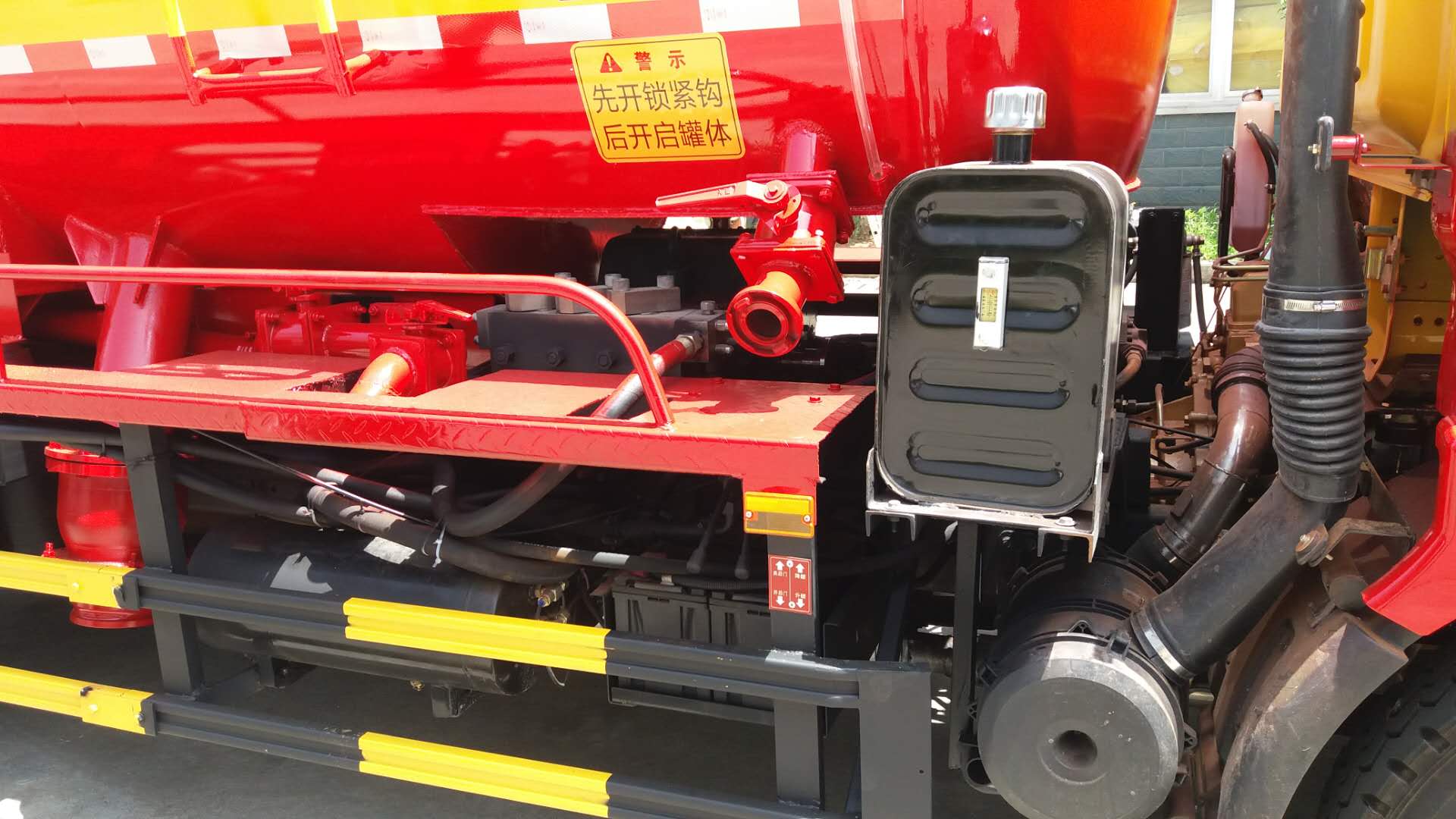 東風(fēng)福瑞卡4方國五吸污車上裝部分:由取力器、傳動軸、真空吸污泵、壓力罐體、液壓部分,管網(wǎng)系統(tǒng)、真空壓力表、視糞窗、洗手裝置等組成,隨車配置大功率真空吸污泵和優(yōu)質(zhì)液壓系統(tǒng),罐體封頭一次壓鑄成型、罐體可后開、雙頂自卸。罐內(nèi)污物可通過后蓋直接傾倒。