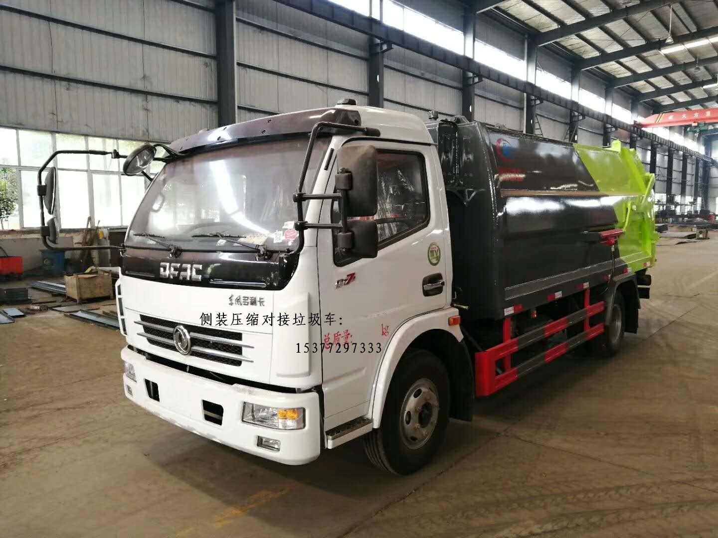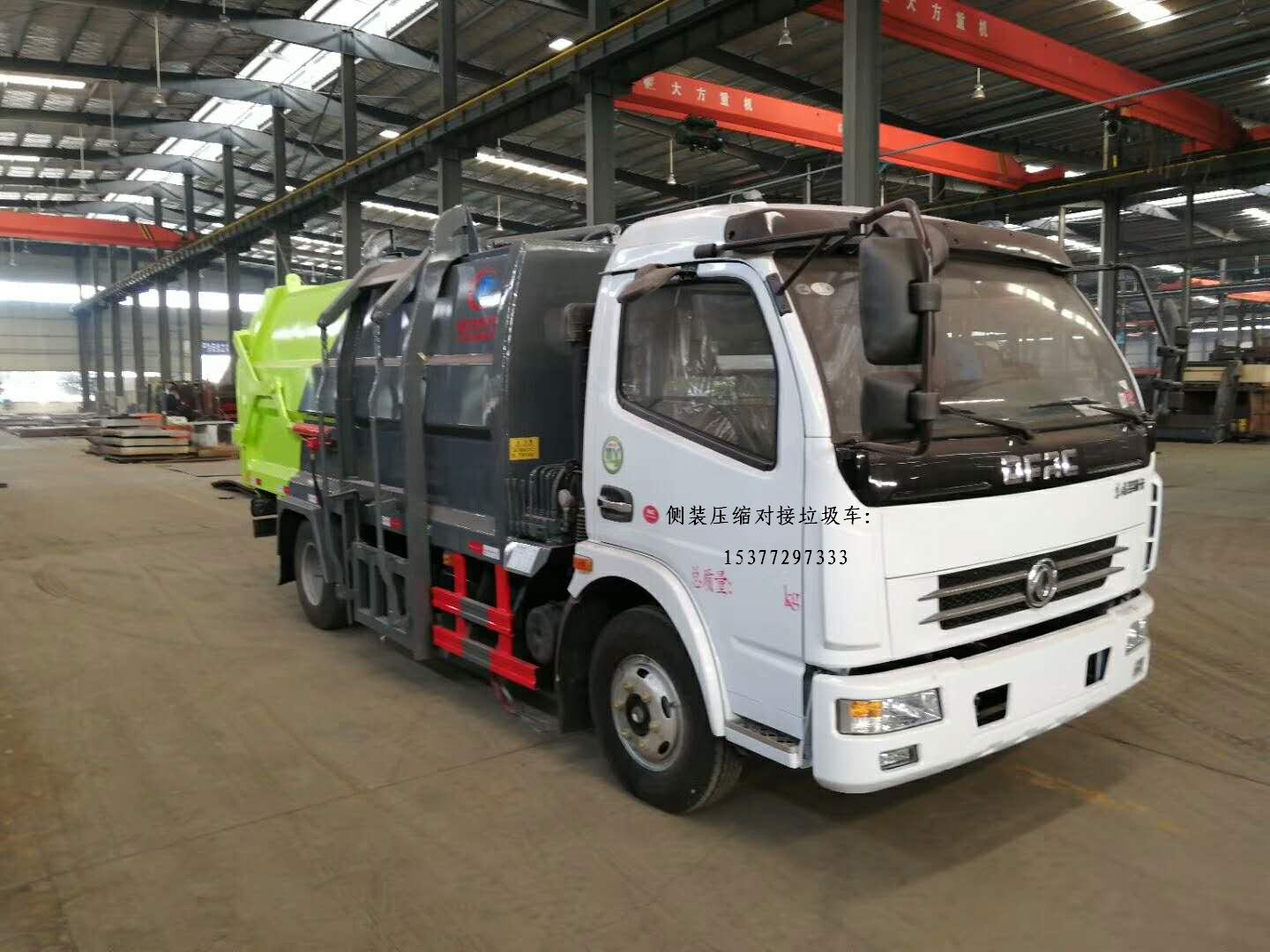 東風多利卡側裝壓縮對接垃圾車,朝柴156馬力國五發動機,3800軸距,7.50鋼絲胎,動轉、ABS,垃圾壓縮廂容積7立方,后門液壓開啟、鎖緊,全行程推鏟壓縮比高卸料方便,常年備有現車,廠家直銷、優惠多多,購車熱線:15377297333