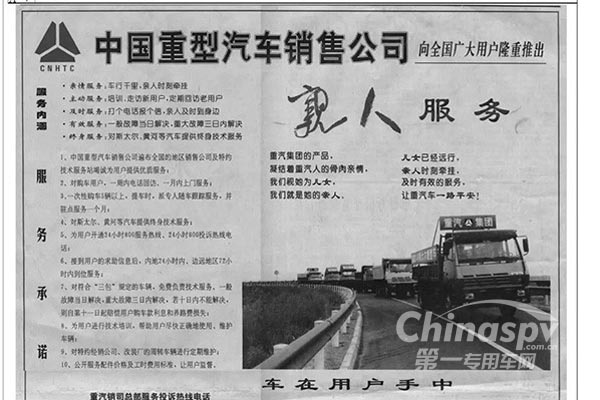 以上圖片是1999年3月14日,《經濟日報》第5795號A4版整版刊發中國“親人”服務。“車在用戶手中,更在’親人’心中”!20年前,《經濟日報》整版刊登中國重汽向廣大用戶推出的“親人”服務。20年來,櫛風沐雨,春華秋實,我們始終把用戶當作“親人”,服務不斷升級,并不斷賦予中國重汽“親人”服務新的時代內涵。
