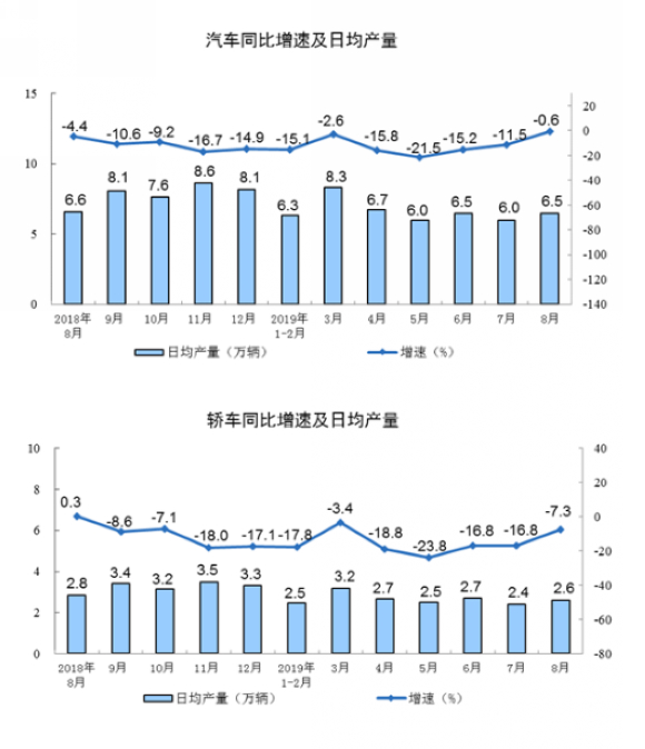 從產(chǎn)品看,8月份,605種產(chǎn)品中有302種產(chǎn)品同比增長。鋼材10639萬噸,同比增長9.8%;水泥21018萬噸,增長5.1%;十種有色金屬491萬噸,增長4.4%;乙烯165萬噸,增長1.8%;汽車200.0萬輛,下降0.6%,其中,轎車80.9萬輛,下降7.3%;新能源汽車10.0萬輛,增長9.9%;發(fā)電量6682億千瓦時,增長1.7%;原油加工量5400萬噸,增長6.9%。