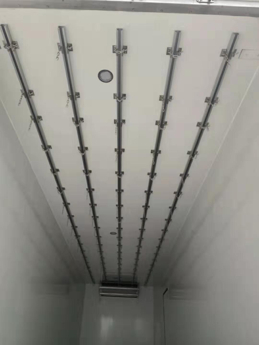 1.廂體材料:通常廂體結構采用三層結構:內外蒙皮采用復合材料,如玻璃鋼、彩鋼等;中間夾層采用保溫材料,如聚氨酯發泡材料等;外側用高強度膠將內外蒙皮和中間夾層粘合在一起,形成一個密封的整體。